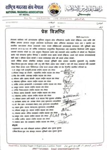 शहबाज खान- प्रेस सलाहकार राष्ट्रीय मदरसा संघ नेपालको हस्ताक्षर मा जारी गरिएको‌ छ।