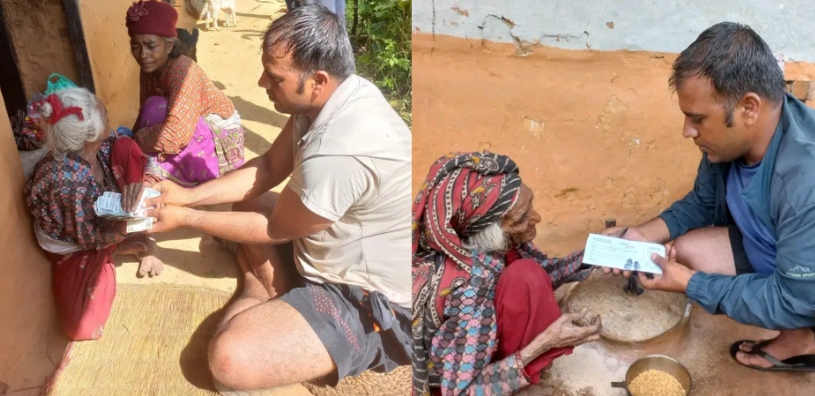 लिखु तामाकोसी गाउँपालिका वडा नं २का अशक्त भएका व्यक्तिलाई घरमै पुगेर सामाजिक सुरक्षा भत्ता वितरण