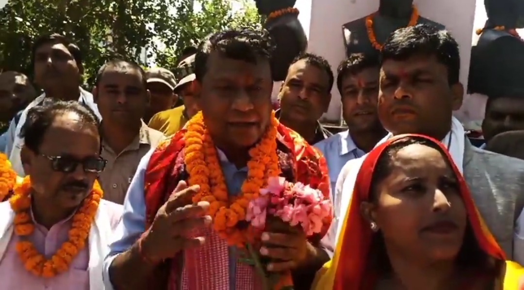 यादव मन्त्री बने लगतै शहिदको शालिकमा माल्यार्पन गर्न आज लहान आइपुगेका छन् ।