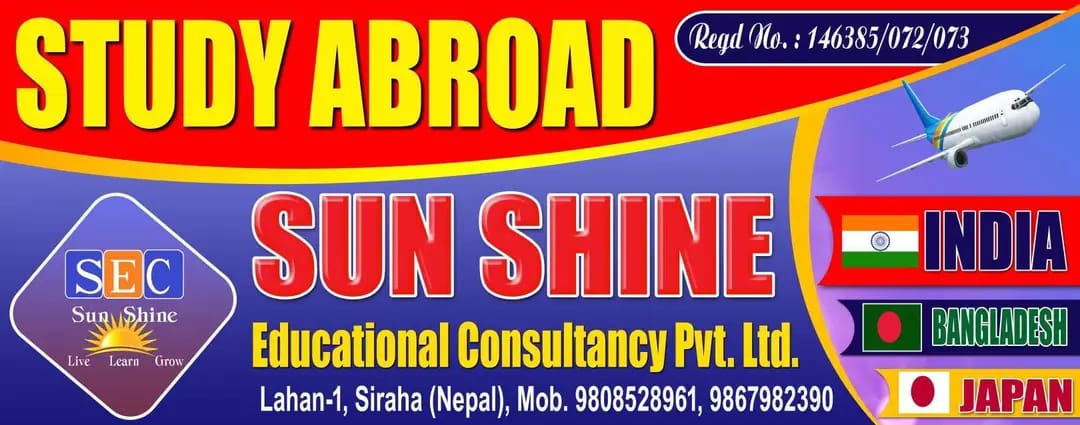 लहान ।सिरहाको लहानमा बिगत ७ बर्ष देखि संचालनमा रहेको सन्साइन एजुकेशनल कन्सलट्यान्सीले अब ३ लाख ५० हजार भारतीय रुपैयाँमै भारतको सुपर्सिद युनिभर्सिटीहरुमा ईन्जिनियरिङ्ग लगायत प्राबिधिक कोषहरु पढाउन अवसर प्रदान गर्दै आएका छन्।