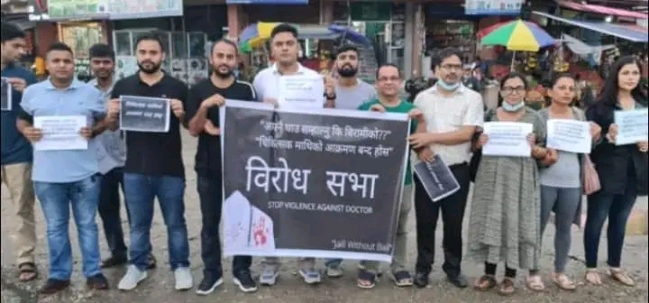 चितवनमा चिकित्सकमाथि भएको आक्रमणको विरोध प्रदर्शन