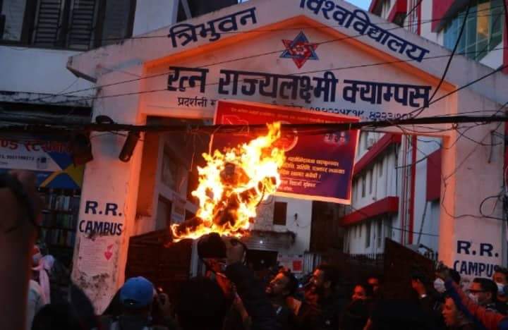 माओवादी निकट अखिल क्रान्तिकारीका विद्यार्थीले राष्ट्रपतिको पुतला जलाए
