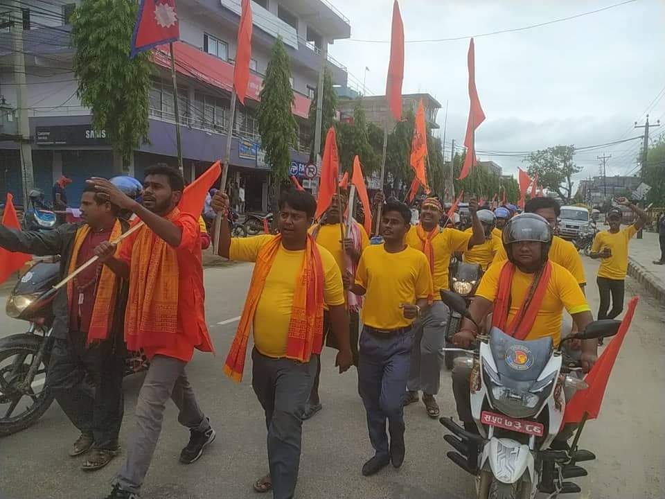 रयालीमा सिरहा,सप्तरी,धनुषा,महोत्तरी,सुनसनी लगायतका युवाहरुको कार्यक्रममा सभागिता रहेको आयोज कमिटीका प्रमुख राजेश कुमार यादवले जनाए।नेपालमा हुँदै गरेको हिन्दु धर्म प्रतिको हिंसा बन्द गर,हिन्दु रास्ट्र कायम गर नारालाई जयमान गर्दै सोभा यात्रा निकालीएका थिए।