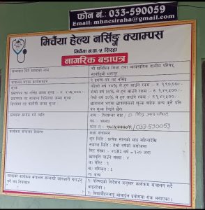 – लहान १९ – सिरहाको मिर्चैया नगरपालिका ५ कटारी चौकमा संचालनमा रहेको मिर्चैया हेल्थ नर्सिङ क्याम्पस प्रालिले सिटीभिटीले तोकेको फि भन्दा बढी रकम विद्यार्थीबाट लिने गरेको खुलासा भएको छ्।