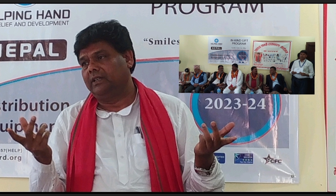 बुधबार अस्पतालमा हेल्पिङ हार्ट र हेल्पिङ ह्याण्डद्वारा सहयोग गरिएको ४८ लाख बराबरको स्वास्थ सामग्री मन्त्री सिंहले मेसु सुनिल कुशवाहालाई हस्तान्तरण गरेका छन् । दातृ संस्थाले जम्मा १४४ प्रकारका उपकरण सहयोग गरेको बुझिएको छ। हस्तान्तरण कार्यक्रमलाई सम्बोधन गर्दै मन्त्रीले भने, ‘ प्रदेश सरकार जनताको स्वास्थ प्रती निकै गम्भीर रहेको छ। प्रदेश सरकारद्वारा हालसम्म गरिएको सकारात्मक कामहरूलाई निरन्तरता दिईनेछ। साथै नयाँ कामहरूको थालनी पनि गरिनेछ।’