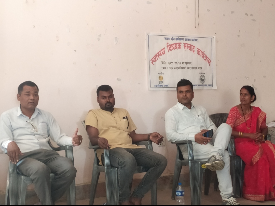 स्वास्थय विषयको सम्बाद कार्यक्रम सम्पन्न भएको छ। संजालको अध्यक्ष सुधा यादवको अध्यक्षतामा सुरु भएको कार्यक्रममा उल्लेखनीय द्वन्द्व पीडित र लहान नगरभित्र रहेको निजि तथा सरकारी अस्पतालको संचालक प्रतिनिधि र ब्यवस्थापक संग सम्बाद कार्यक्रम सम्पन्न भएको हो उक्त कार्यक्रममा नगर उप प्रमुख राम चलीतर महतो द्वन्द्व पीडित उमेश साह लगायतका बिशिस्ट ब्यक्तीहरुको उपस्थिति रहेको कार्यक्रमको समाजिक परिचालिका नितु बछारले जानकारी दिनु भयो।सम्बादमा स्वास्थय विषयमा गहन छलफल भएको थियो।