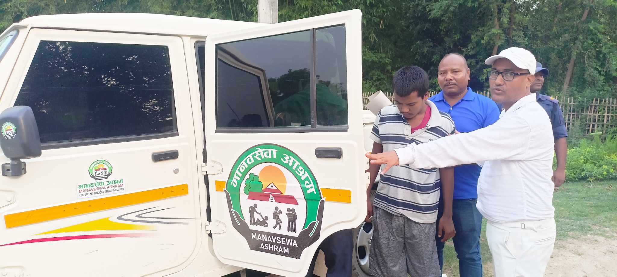 पाँच वर्षदेखि फलामे साङला ९सिक्री०मा बाँधिएका मनोरोगी २५ वर्षीय प्रविनकुमार चौधरीलाई उपचार र स्याहारका लागि उद्धार गरी जनकपुरधामस्थित मानव सेवा आश्रम लगिएको आश्रमका सचिव सुमन बड्तौलाले बताउनु भयो । आश्रमका सचिव सुमन बड्तौला, मधेस प्रदेश संयोजक विवेक महतो, सन्तोष थापा मगरको टोलीले चौधरीलाई उद्धार गरी लगेको हो ।