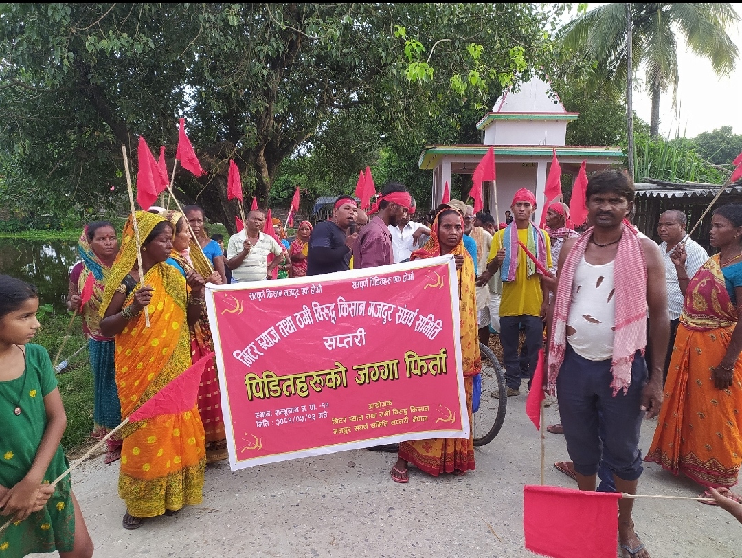 मिटर ब्याज तथा ठगी विरुद्ध किसान मजदुर संघर्ष समिति नेपालका सप्तरी जिल्ला अध्यक्ष बिरेन्द्र कुमार सिंह उपाध्यक्ष बिजय चौधरी केन्द्रिय सदस्य पुनिता चौधरी श्रमिक फोर्सको सप्तरी जिल्ला संयोजक शिव चन्द्र लेखी,मिथिला कमान्डका अध्यक्ष सुर्य नारायण मंण्डल,लक्ष्मी चौधरी लगायतका संघर्ष समितिका अगुवाहरुको प्रदर्शन कार्यक्रममा उपस्थिति रहेको थियोे।