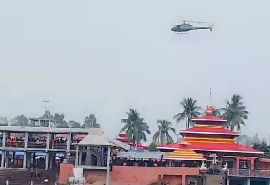 छिन्नमस्ता र कङ्कालिनी मन्दिरमा हेलिकप्टरबाट पहिलोपटक पुष्पवृष्टि