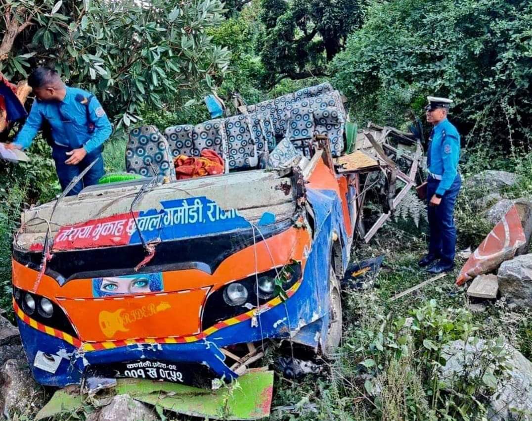 दैलेख ।दैलेखको गुराँस गाउँपालिका–४ डबलगैरामा क प्र ०२००१ख०८२५ नम्बरको मिनीबस दुर्घटनाग्रस्त भएको छ। स्थानीय प्रशासनका अनुसार, नगरपालिकाबाट सुर्खेततर्फ जाँदै गरेको यो मिनीबस दुर्घटनामा परेर एक जनाको मृत्यु भएको छ भने २ जना घाइते भएका छन्।