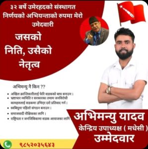 केन्द्रिय उपाध्यक्ष उम्मेदवार यादवको घोषणा: ‘भ्रष्टाचार र व्यथितिविरुद्ध सशक्त संघर्ष गर्छु’