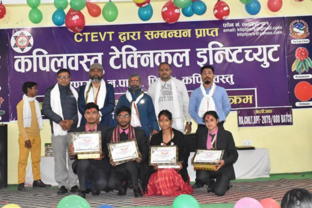 कपिलवस्तु, २६ माघ ।कपिलवस्तु टेक्निकल इन्स्टिच्युट बाणगंगा -२ पिपराले नव आगन्तुक विद्यार्थीहरूलाई स्वागत र खेल सप्ताहको समापन समारोह सम्पन्न गरिएको छ। माघ २० गतेदेखि जारी खेलकुद प्रतियोताको शुक्रबार समापन गरिएको हो । कार्यक्रममा विभिन्न खेलकुद प्रतियोगिताका विजयीहरूलाई पुरस्कार तथा प्रमाणपत्र वितरण गरिएको थियो l