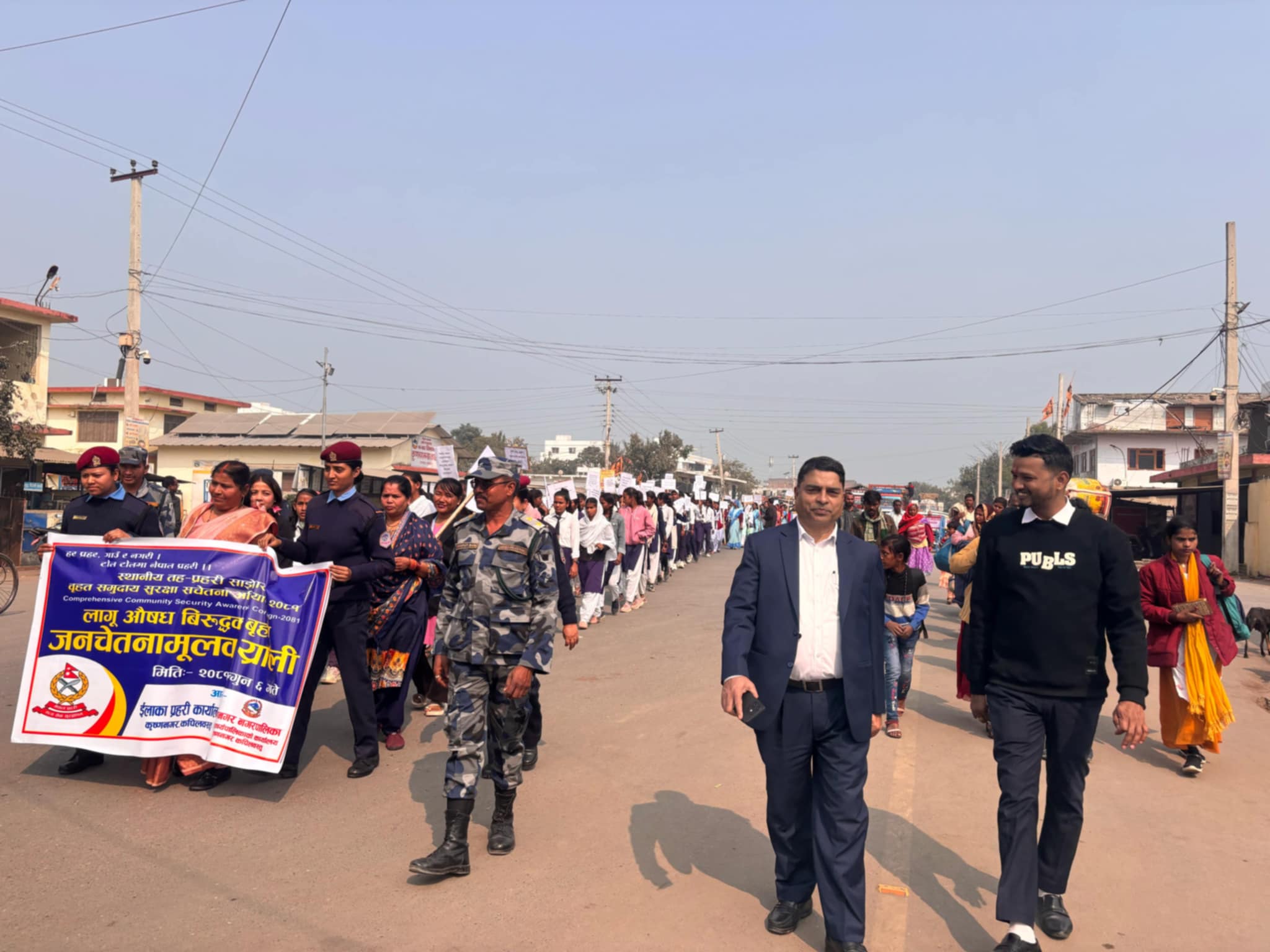 अभियानको पहिलो दिन लागू औषधविरुद्ध बृहत जनचेतनामूलक र्याली निकालिएको छ। कृष्णनगर नगरपालिकाको समन्वयमा निकालिएको