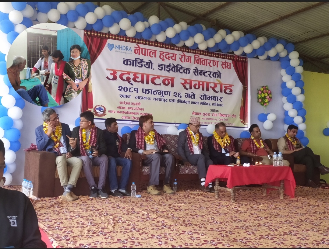 महेश सिंह सिरहा- मधेश प्रदेशको लहानमा हृदय रोग निवारण तथा मधुमेह उपचार केन्द्र स्थापना भएको छ। नेपाल हृदय रोग निवारण संघद्वारा सञ्चालन गरिएको कार्डियो-डायबेटिक सेन्टर औपचारिक रूपमा उद्घाटन गरिएको हो।