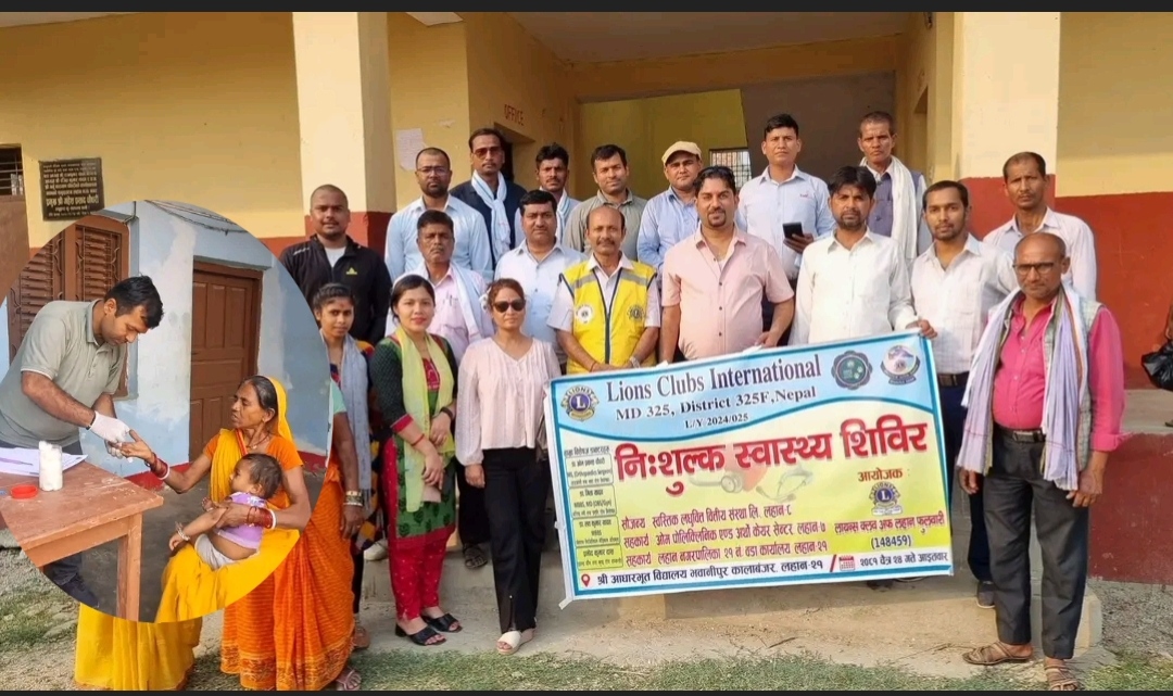 महेश सिंह सिरहा- लायन्स क्लब अफ लहान फुलबारीले सिराहाको लहान नगरपालिका–२१ स्थित भवानीपुर कालाबंजरमा एकदिने नि:शुल्क स्वास्थ्य शिविर सम्पन्न गरेको छ। आधारभूत विद्यालयको प्राङ्गणमा आयोजित शिविरमा ३३८ जनाले विशेषज्ञ चिकित्सकहरूमार्फत स्वास्थ्य सेवा लिएका छन्।