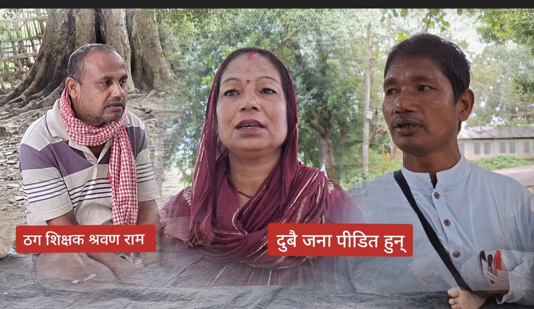 महेश सिंह सिरहा – सप्तरीको सुरुङ्गा नगरपालिका–९ प्रमाणपुरका स्थानीय शिक्षक श्रावण राममाथि वैदेशिक रोजगारका नाममा गाउँका सोझासिधा नागरिकहरूलाई ठगी गरेको आरोप लागेको छ। जनताको विश्वास जितेर बिदेश पठाउने प्रलोभनमा पारी लाखौँ रुपैयाँ असुली गरिएको पीडितहरूले बताएका छन्।