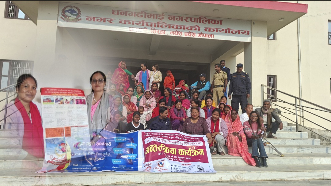 महेश सिंह लहान सिरहा -सिरहाको धनगढीमाई नगरपालिका–५ मा ३४औँ लैङ्गिक हिंसा विरुद्धको १६ दिने अभियानअन्तर्गत अन्तरक्रिया तथा अभिमुखीकरण कार्यक्रम सम्पन्न भएको छ। महिलामाथि बढ्दो डिजिटल हिंसा (साइबर दुर्व्यवहार, ब्ल्याकमेलिङ) न्यूनीकरण गर्ने लक्ष्यका साथ कार्यक्रम आयोजना गरिएको हो।