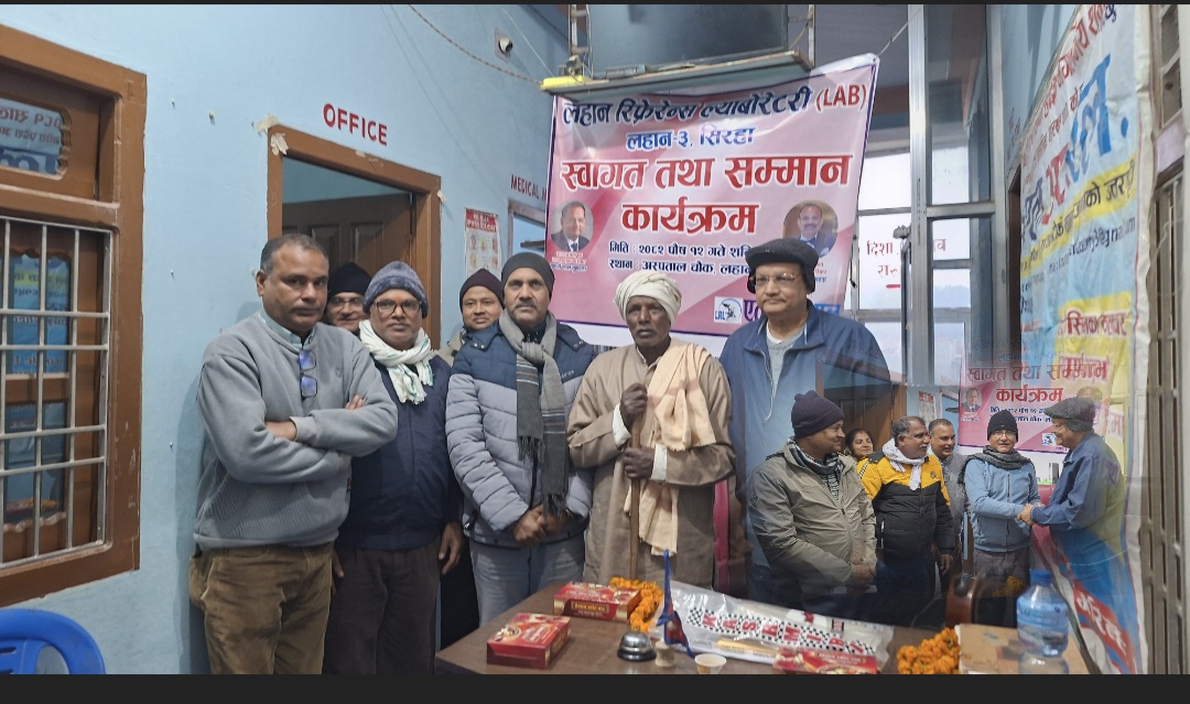महेश सिंह लहान,सिरहा- लहान–३ स्थित लहान रिफ्रेरेन्स ल्याबोरेटरी (एल.आर.एल.) ले वरिष्ठ समाजसेवी तथा दानवीर मुरारी लाल मुरारकालाई शनिबार भव्य रूपमा स्वागत तथा सम्मान गरेको छ। स्वास्थ्य र सामाजिक सेवामा लामो समयदेखि पुर्याउँदै आएको योगदानको कदरस्वरूप उनलाई सम्मान गरिएको आयोजकले जनाएको छ।