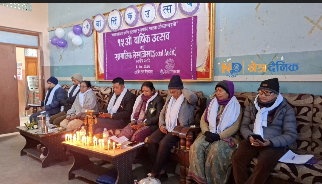 मुक्ति नेपालले आफ्नो १५औँ वार्षिकोत्सव तथा सामाजिक लेखाजोखा कार्यक्रम भव्य रूपमा सम्पन्न गरेको छ। कार्यक्रममा मधेस प्रदेश सभा सदस्य माननीय जीवछी यादव प्रमुख अतिथिका रूपमा सहभागी थिए भने गोलबजार नगरपालिकाका प्रमुख श्यामकुमार श्रेष्ठ, नरहा गाउँपालिकाका उपप्रमुख, वडा अध्यक्षहरू, सरोकारवाला निकाय, महिला, युवा, किशोरी समूह, बाल क्लब सदस्य तथा सञ्चारकर्मी गरी करिब १५० जनाको सक्रिय सहभागिता रहेको आयोजकले जानकारी दिएको छ।